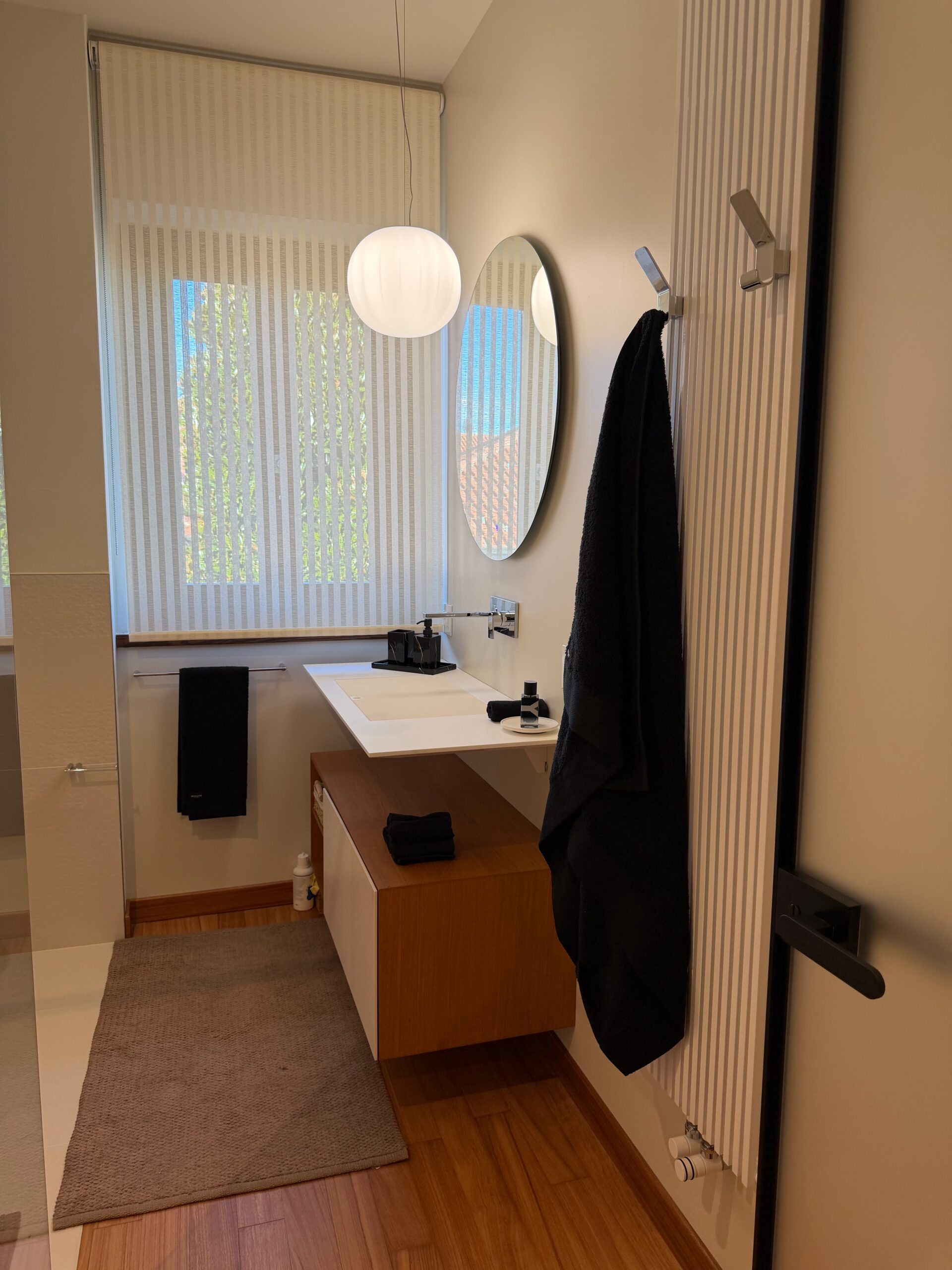 La palette beige scelta per pareti e superfici valorizza la luminosità naturale e rende questo bagno ideale per chi cerca un ambiente elegante, accogliente e senza tempo. Ogni elemento è stato studiato per offrire una soluzione di arredamento capace di unire estetica e praticità, con uno stile discreto ma di grande impatto.